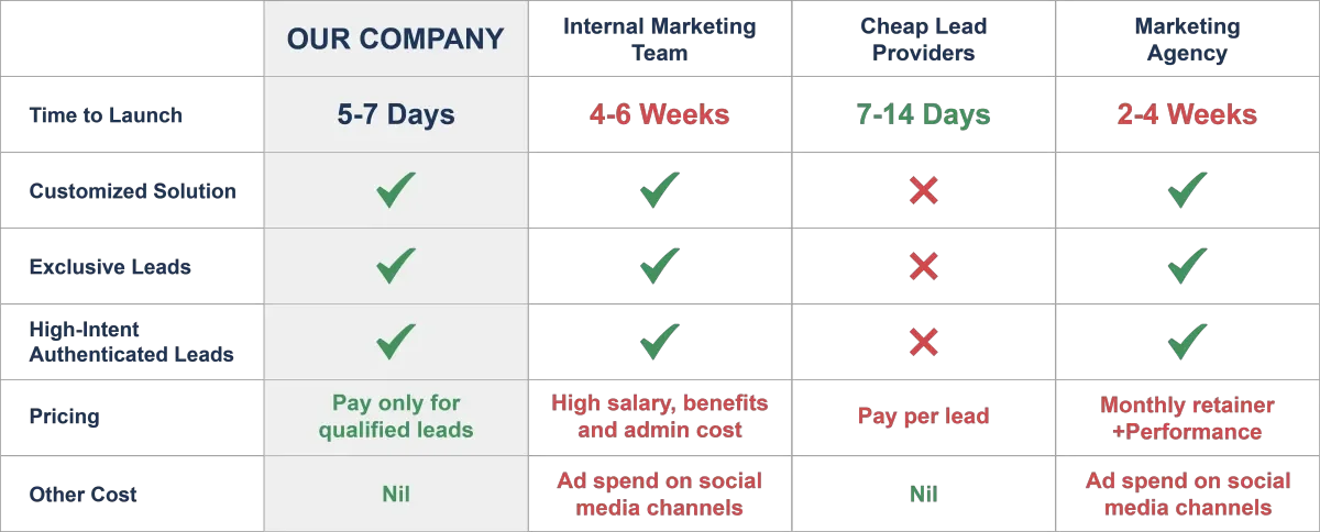 We invest in the ads, targeting, and optimization. You only pay for leads that genuinely match your business.